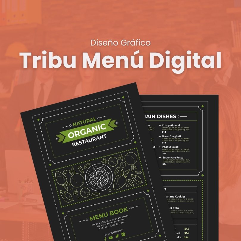 Moderniza la presentación de tu menú con un diseño digital claro, práctico y acompañado de un tent card con QR para tus clientes.